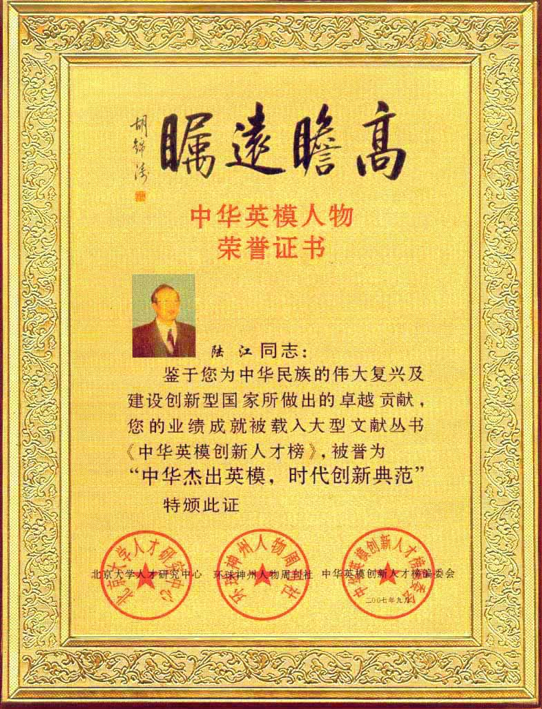 陸江的杰出貢獻(xiàn)被人民日?qǐng)?bào)社評(píng)為先進(jìn)個(gè)人